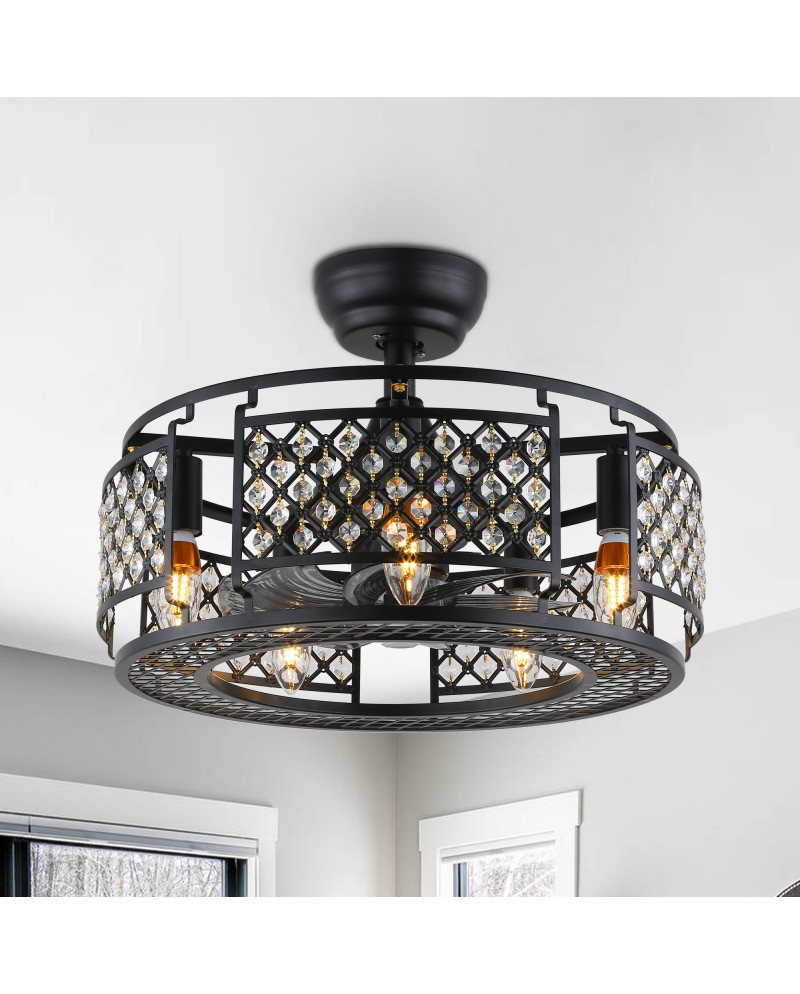 Add ambiance and a breeze to your space with this 8-blade ceiling fan. This modern industrial fan is made of metal and comes with two different sized booms (5" and 10"), choose the right boom according to the height of the ceiling, compatible with sloping ceilings (less than 15 degrees included angle). It features an open metal shade and its four bulbs (not included) give a soft glow to your living room or bedroom. This low-noise ceiling fan has three speeds to give you a comfortable and quiet sleep.