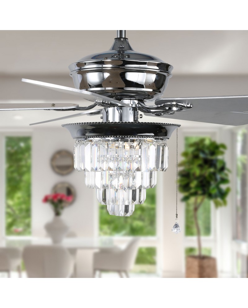 Create a cozy and stunning living atmosphere with this crystal ceiling fan. With a crystal shade, this ceiling fan lamp creates a luxurious atmosphere for your interior space. Three fan speeds (low/medium/high) can be freely adjusted to make life more convenient. Reversible blades keep cool in the summer and keep the interior warm in the winter by rotating counterclockwise to push hot air downward, allowing fresh air to circulate in the room. Comes with two different sizes of down rods to hang the ceiling fan as high as you want. The included remote control and zipper control for the fans and lights for a comfortable living experience.