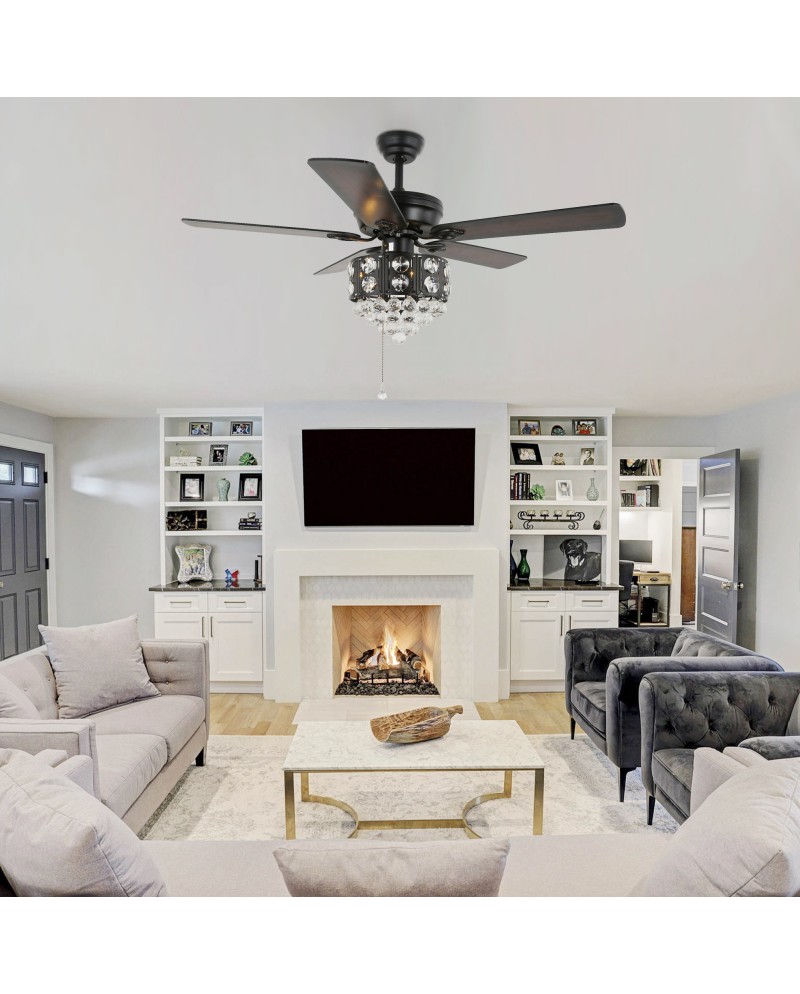 Create a stylish and sparkling room space with this crystal ceiling fan. Ceiling fans and lights can work separately or together. This ceiling fan light requires 3 E12 bulbs (not included) to light up your room and meet your lighting needs. Reversible fan blades keep the room cool in the summer and warm in the winter and enjoy the recycled air all year round. The almost silent motor runs smoothly, creating a comfortable and quiet sleeping environment. Make your space more gorgeous with this crystal ceiling fan light.