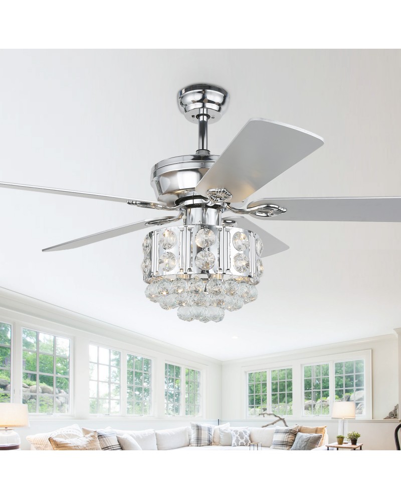 Create a stylish and sparkling room space with this crystal ceiling fan. Ceiling fans and lights can work separately or together. This ceiling fan light requires 3 E12 bulbs (not included) to light up your room and meet your lighting needs. Reversible fan blades keep the room cool in the summer and warm in the winter and enjoy the recycled air all year round. The almost silent motor runs smoothly, creating a comfortable and quiet sleeping environment. Make your space more gorgeous with this crystal ceiling fan light.