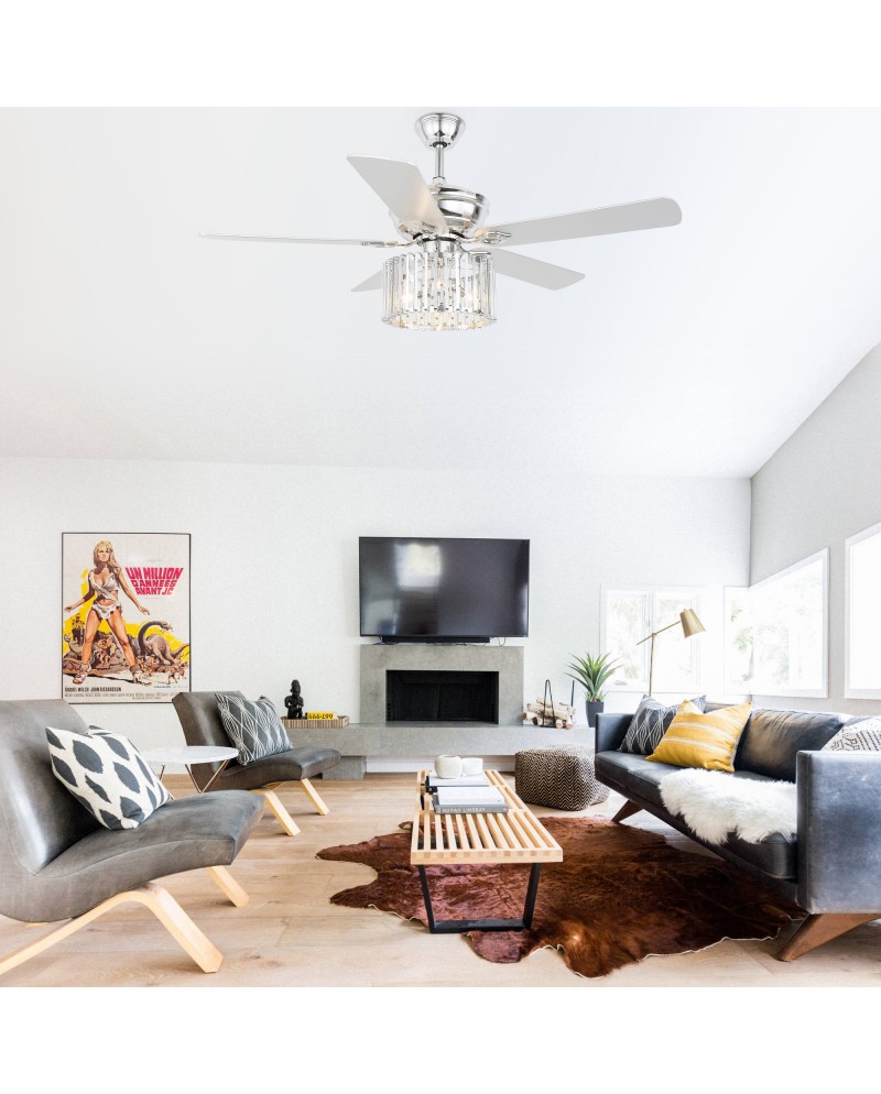 Bring charming charm to your living space with this glamorous ceiling fan. This ceiling fan light is equipped with a three-speed motor (low/medium/high) to select the appropriate fan speed to maintain the optimum temperature. The fan blades are wood with a perfect combination of chrome and metal finish on one side. At the same time, the reversible fan blade keeps the room cool in summer and keeps the room warm in winter by reversing downward to push warm air. The included zip or remote control can operate all the functions of the fan and light, making life more convenient. Requires 3 E12 bulbs (not included) to light up your room in style.