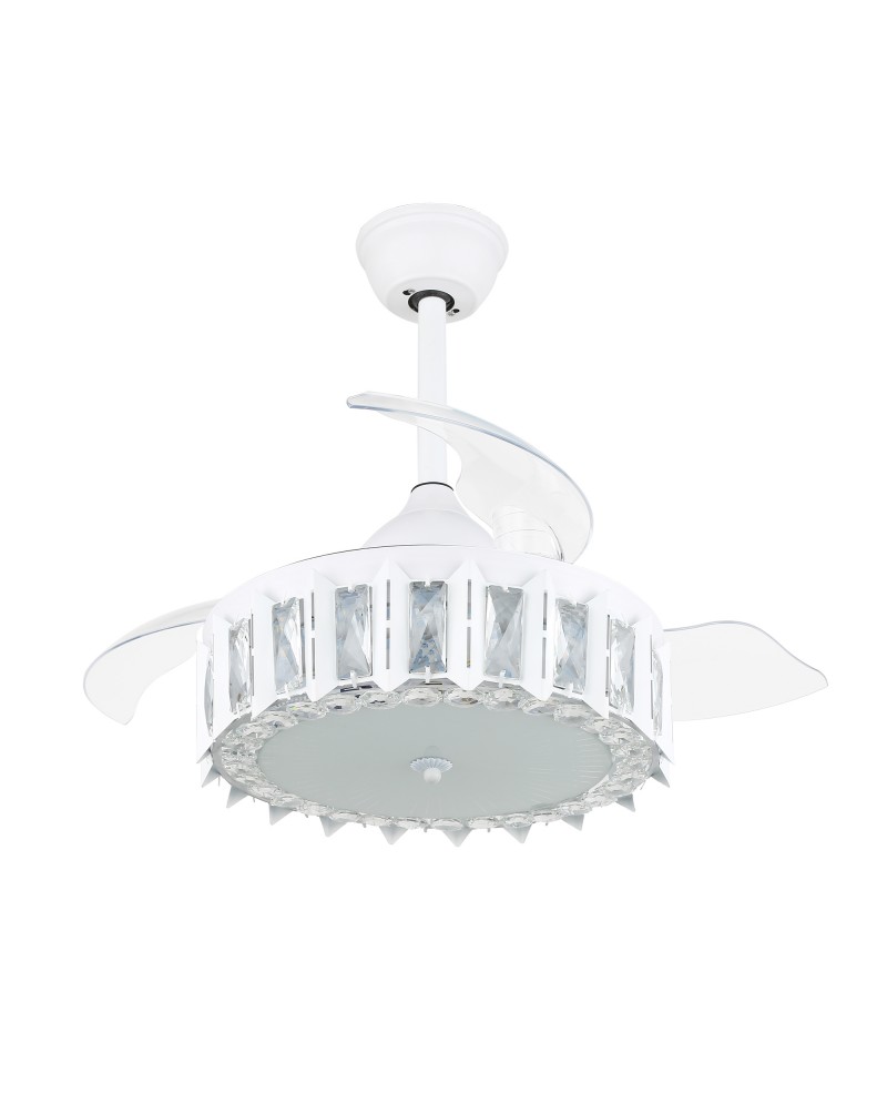 36-Inch Crystal Retractable Ceiling Fan with CCT Dimmable LED Light and Remote Control for Living room, Black, Chrome, Gold, White
