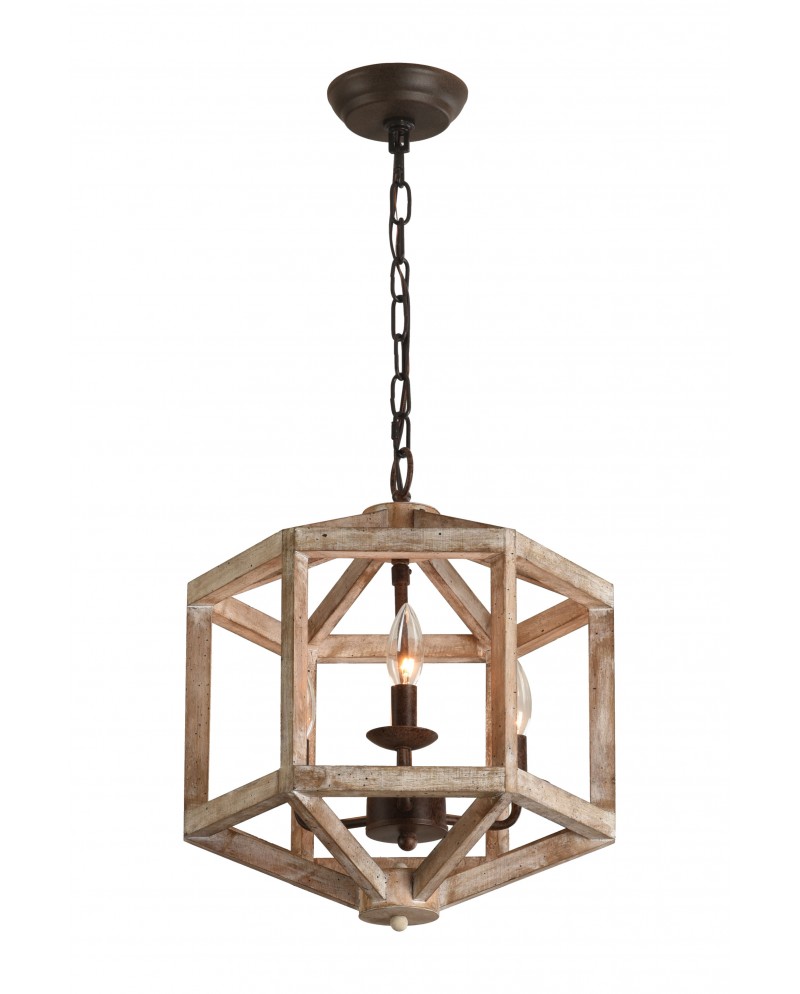 Eye-catching glamour and elegance are showcased in this antique cage-shaped wooden chandelier. The combination of the metal lamp base and the wood frame shows a unique look. The weathered wood finish and distressed metal rust chain give this chandelier a historic feel. Featuring a unique cage design with three candelabra lamps inside (bulbs not included), it's perfect for the rustic cottage aesthetic. Depending on the type of light bulb, the shade of the cage design creates a soft, shimmering glow for a comfortable living environment.