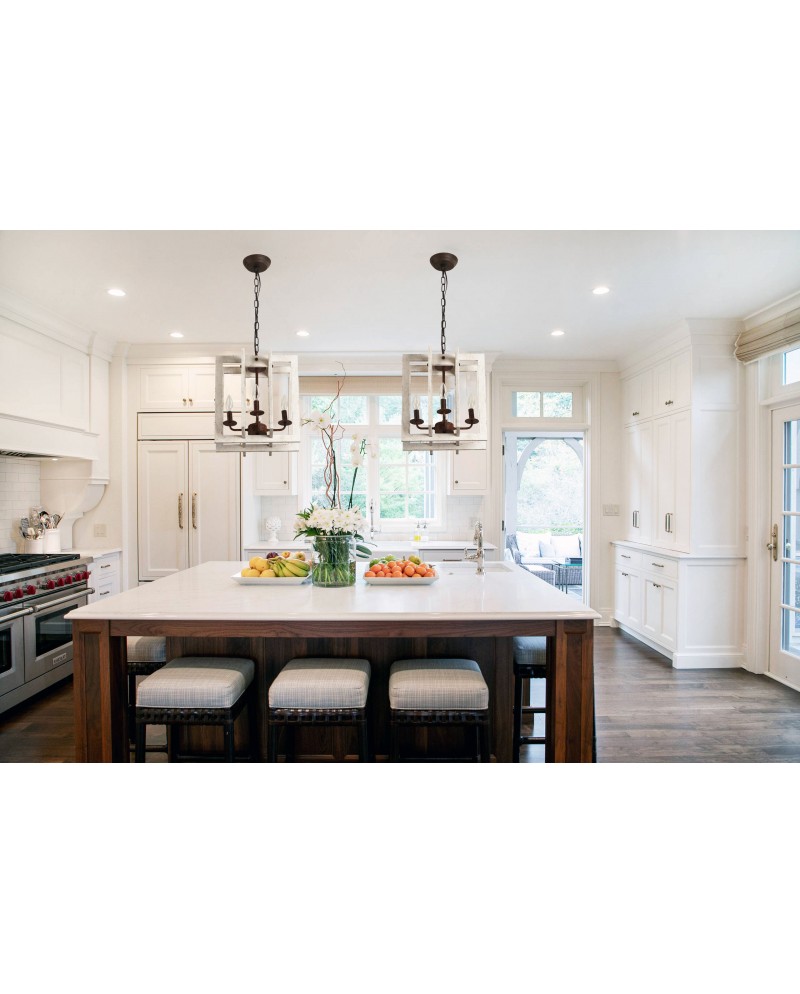 Farmhouse Chandelier 4-Light Lantern Geometric Light with Wood Accents
