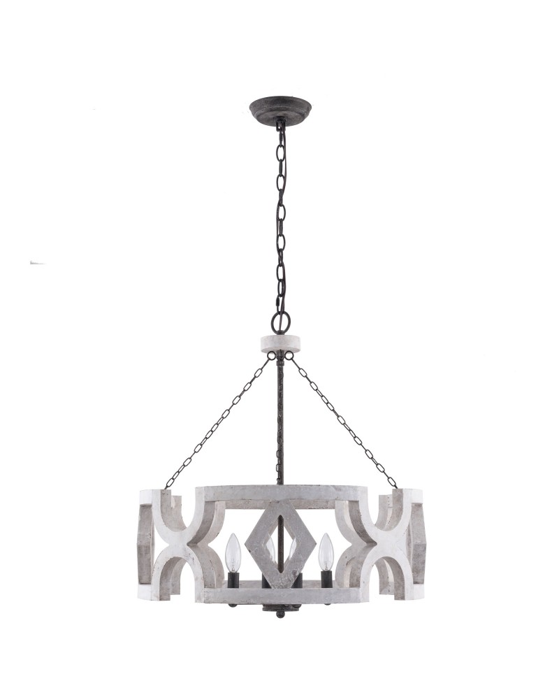 Antique 4-Light Wood Ceiling Lighting Rustic Farmhouse Chandelier, Weathered Wood, Distressed White