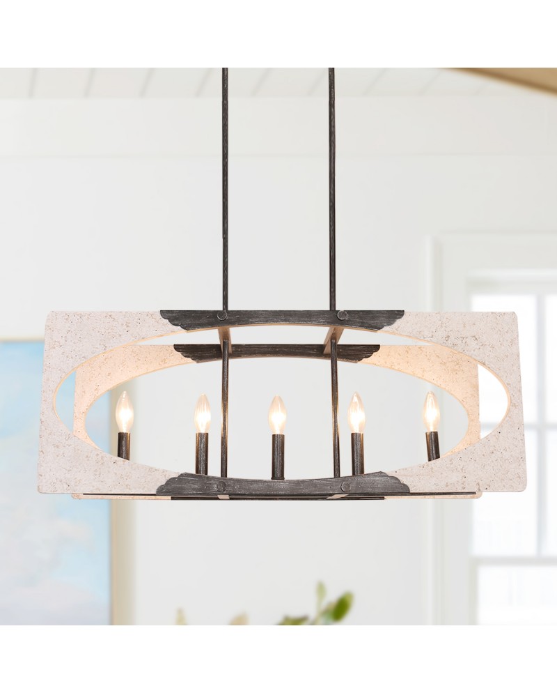 Provide ample illumination to your room with this farmhouse-style chandelier. This 5-light chandelier has a transitional design with constructed clean lines and a rectangular frame. Come with three different sizes of down rods(7.8-inch, 11.8-inch, 18.7-inch), which install any one/ two/ all of them at your desired height. Perfect for a kitchen, dining room, living room, bedroom, foyer, hall, entry, or restaurant.