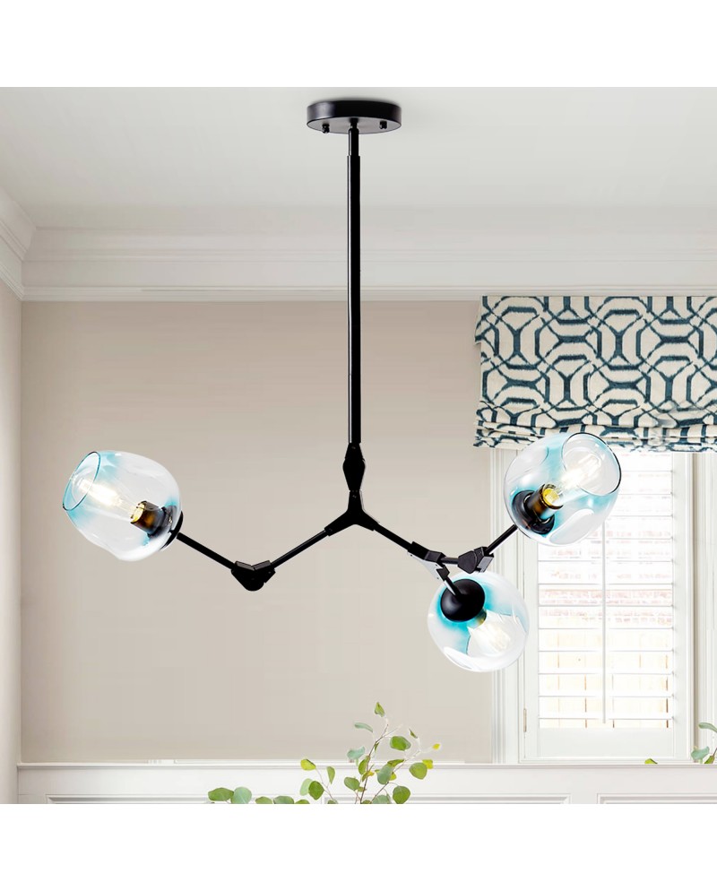 Provide a minimalist and upscale living ambiance with this chandelier from Cusp Bran. This chandelier with a unique character design is great for public spaces such as living room, kitchen, dining room, etc. The arm of this chandelier is made of metal with a smooth finish. At the end of each arm is a colored shade. Add an elegant and stylish living atmosphere to your room space with gradient glass shades. 40-watt bulbs (not included) keeps the room well-lit. This exquisite chandelier pendant light is your best choice!