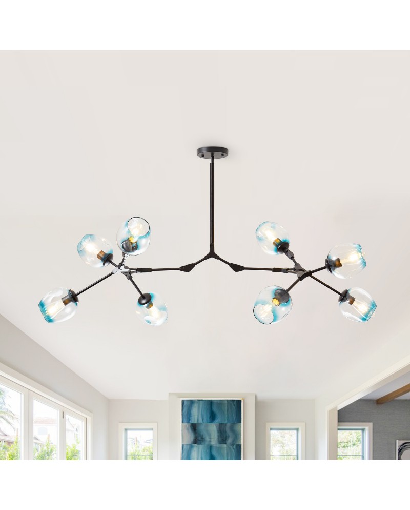 Create a modern and fashionable interior of your room space with this mid-century eye-catching chandelier pendant light from Cusp Bran. This sputnik-style chandelier features eight bulbs(not included) with orb-shaped glass shades. The adjustable down rod lets you adjust the height you want. For your home life to provide a comfortable home atmosphere.