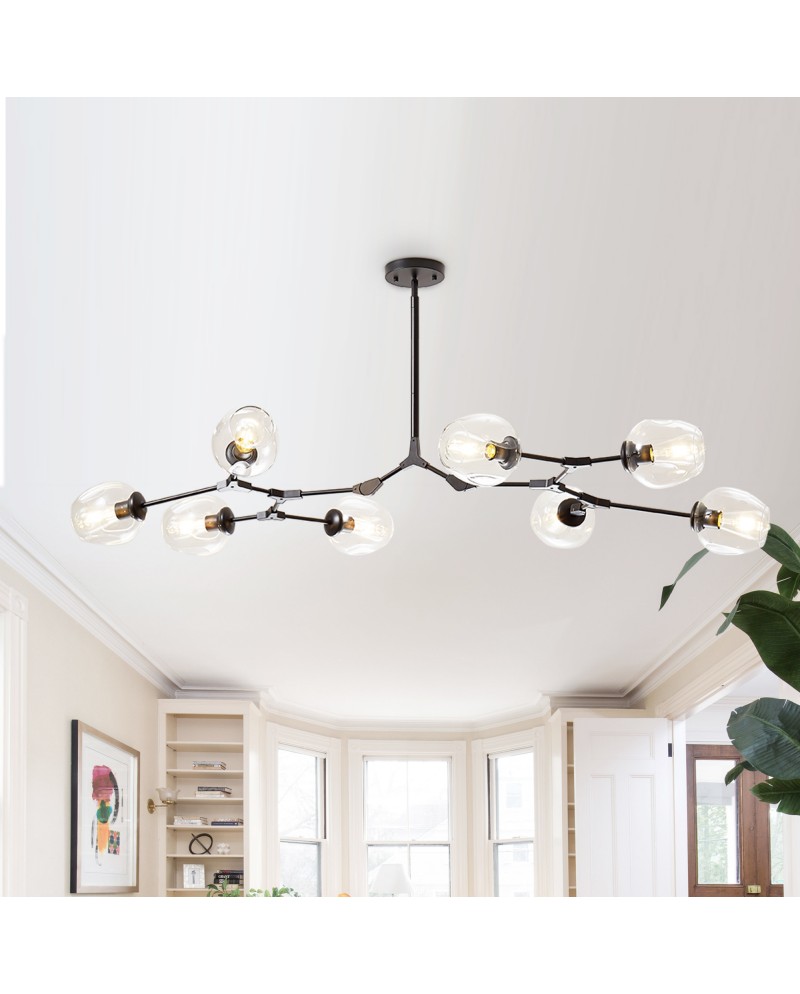 Create a modern and fashionable interior of your room space with this mid-century eye-catching chandelier pendant light from Cusp Bran. This sputnik-style chandelier features eight bulbs(not included) with orb-shaped glass shades. The adjustable down rod lets you adjust the height you want. For your home life to provide a comfortable home atmosphere.
