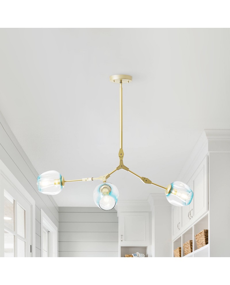 Add an artistic flair to your home decoration with this 3-light pendant light. This pendant lamp features a colorful shade that adds more vibrancy to an otherwise dull metal-finished light stand. We have four shades of amber, glazed, transparent, and smoke grey, which can be purchased according to the color you like. The glass lampshade is transparent like starlight, illuminating your room 360 degrees. Requires three Edison bulbs (not included) to provide the most comfortable lighting in the dark. The metal frame has a fine texture, anti-corrosion, and high quality. This pendant light is perfect for areas like kitchen islands, bedrooms, hallways, hallways, and more.