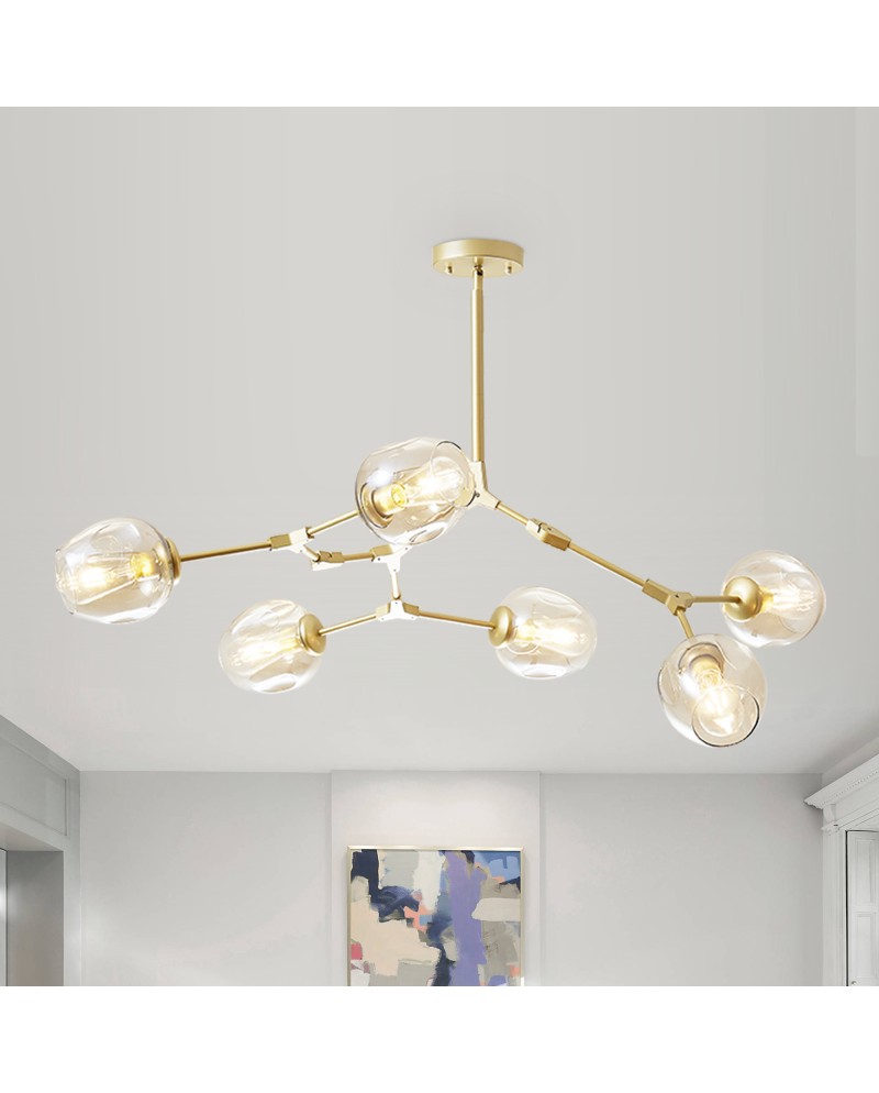 Add to glamorous home interiors with this splendid chandelier pendant light. This 6-light kitchen island pendant light fixture features a metallic look and glass shade to bring charming style to your home decor. The minimalist look is suitable for a variety of interiors. Glass shades of different colors make the space more vibrant. The canopy is made of high-quality metal, which is heavy-duty and sturdy. Requires 6 bulbs (not included) to light up your home space and not be afraid even in the dark. At the end of a busy day at work, enjoy the most pleasant time with your family in the evening.