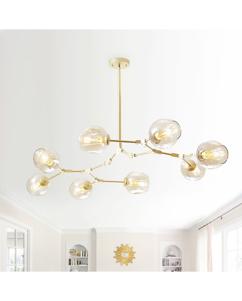 Provide a cozy and stunning ambiance with this minimalist style pendant light. This 8-light chandelier pendant light is the perfect combination of modern and industrial. The metal-finished frame is full of industrial flair, combined with a coloured glass shade to bring home decor to life. Space decoration should be more artistic, artistic home environment, quietly create romantic feelings. 8 light bulbs (not included) have their own aura, reflecting the happy time of hospitality at home. Equipped with a height-adjustable boom, you can hang the height you want and adjust the height according to your needs, making your life more convenient. Such a beautiful and practical pendant light is your best choice.