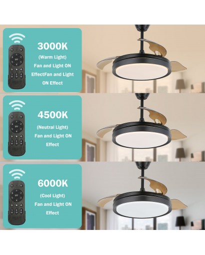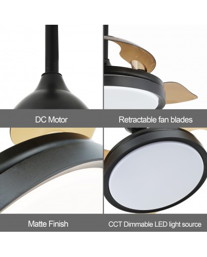 42" 3 - Blade LED Retractable Blades Ceiling Fan with Remote Control and Light Kit Included