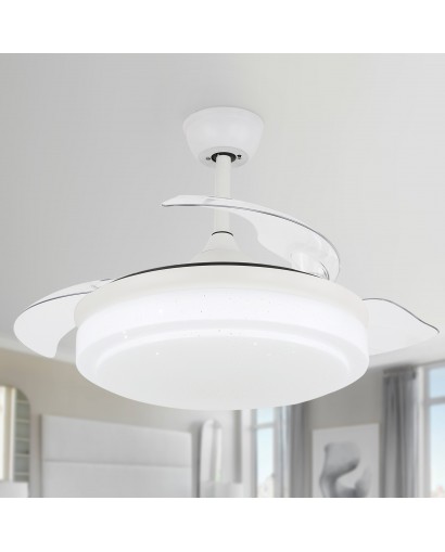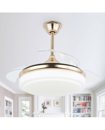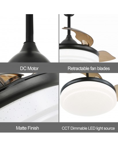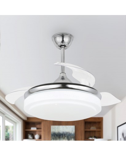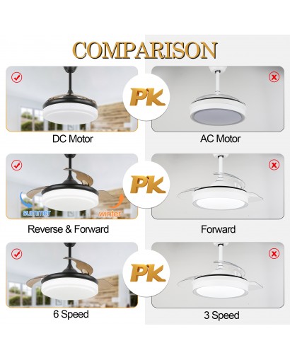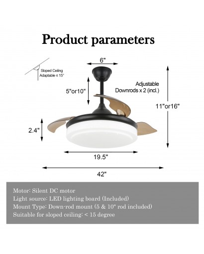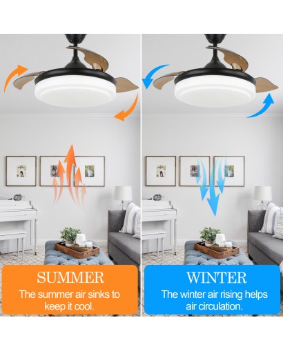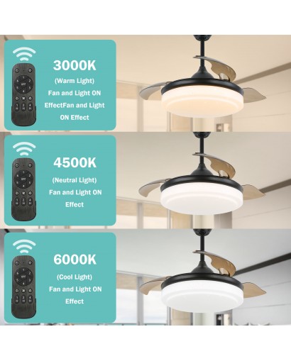 Enjoy the fresh breeze with this contemporary ceiling fan. This ceiling fan light adopts a DC mainframe, which is more functional than the traditional AC motor. 3 retractable ceiling fan blades, which automatically expand when you open them and automatically shrink when you close them, saving space for your room. The reversible function of the blades circulates air to keep the room cool. Use with fan and air conditioner in winter to push warm air down and keep the interior warm. The fan blades extend up to 42 inches in diameter, making them ideal for living rooms, bedrooms, kitchens, and more.
