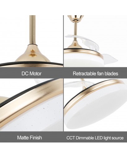 42" Modern Reversible 3-Blade Ceiling Fan with Remote Control and Light Kit Included, Chrome, Black, White, French Gold