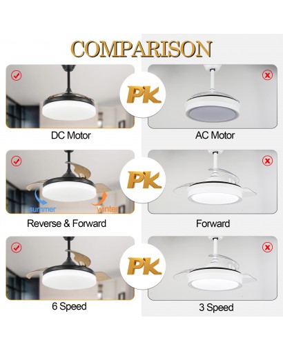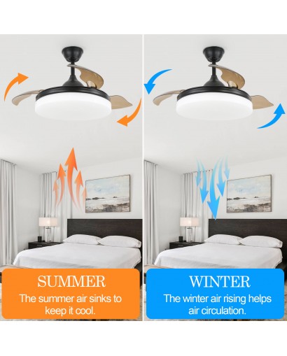 Get stunning style with this modern ceiling fan light. A ceiling fan light that combines fan function and lighting function to provide a modern touch to home decor. Fans and lights can be individually controlled to make life more convenient. Ceiling fans with DC silent motors provide a quiet and comfortable sleeping environment. The lighting kit has a memory function. After a power failure, the lamp will remember the brightness before the power failure, and the last brightness will be automatically restored when the lamp is turned on again. Reversible blades keep cool in summer and enjoy circulating air in winter, improving quality of life.