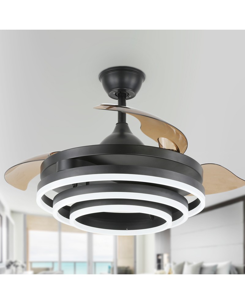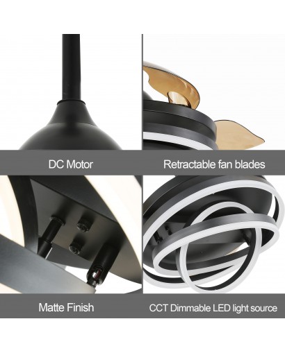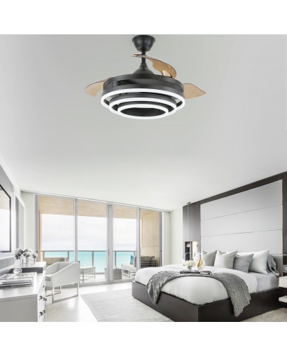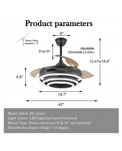 42" LED 3-Blade celing fan, reversible blades, retractable blades, DC motor