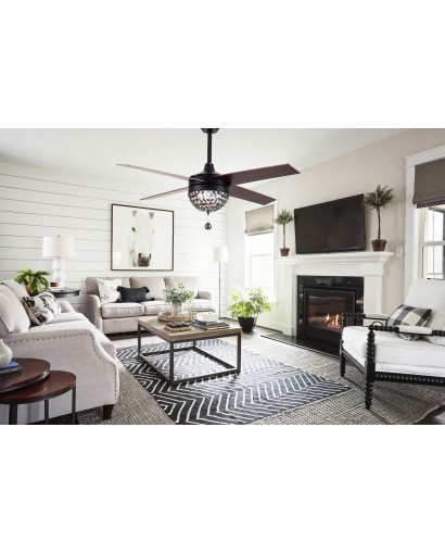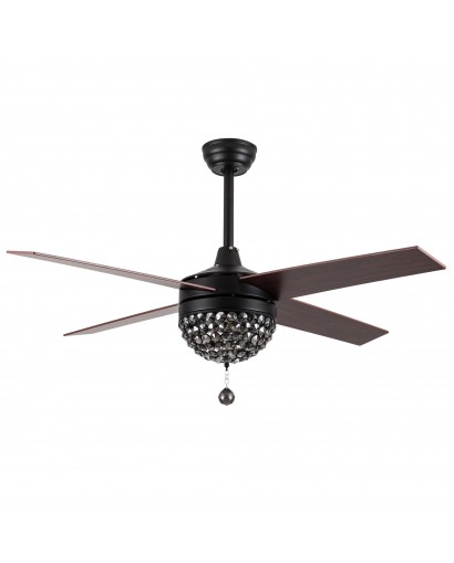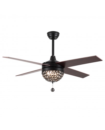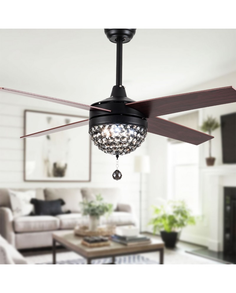 5 - Blade Reversible Crystal Ceiling Fan with Remote Control and Light Kit Included, 42-inch adn 52-inch, Black, Chrome, Coffee, White