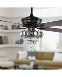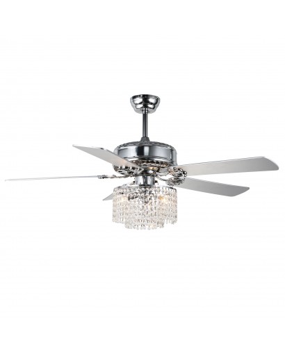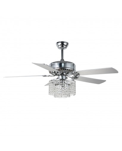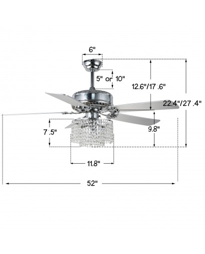 Create a luxurious atmosphere in your home space with crystal ceiling fans. This ceiling fan is the perfect combination of light and chandelier, chandelier and light can work independently. The 5 wooden blades have different finishes on each side, one side is painted chrome and the other is wood to suit the different decoration styles of your space. Requires 3 E12 bulbs (not included) to light up your space and enjoy the cozy living environment and delicious dinner with family or friends under soft lighting after a busy work day. The lampshade of the crystal could refract light making the light softer, and will not dazzle when looked directly at the light source. This is the ideal ceiling fan for the living room, dining room, bedroom, lounge, and family room.