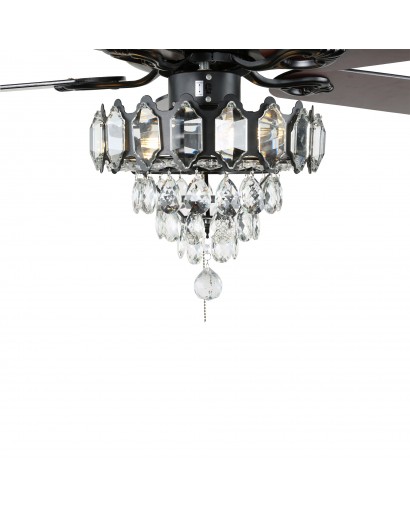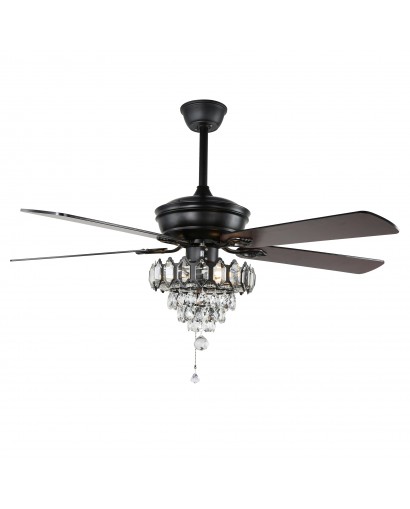 52" Reversible 5-Blade Crystal Chandelier Ceiling Fan with Remote Control, Black, Chrome