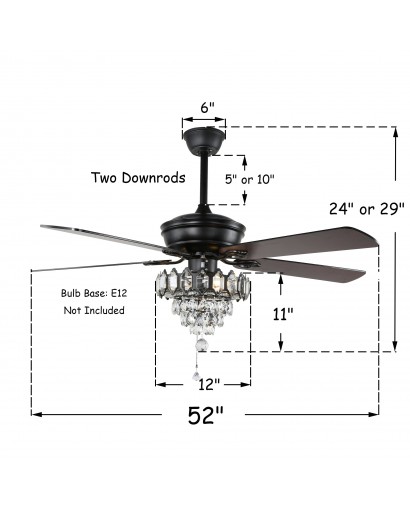Provide a luxurious and splendid interior to your home space with this crystal ceiling fan. With the 3-speed adjustable (high, medium, low) and high-quality motor runs smoothly without noise, giving you a quiet and comfortable environment. Equipped with 5 reversible blades to change the wind direction as needed, turning forward in summer to enjoy cooler winds and reversed in winter to help recirculate warm air. Comes with two different sizes of down rods (5" and 10") and hangs at the desired height, which is compatible with sloped ceilings (max angle: 15°).