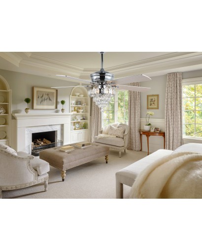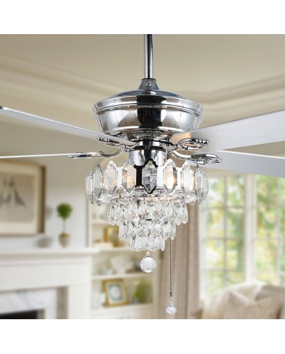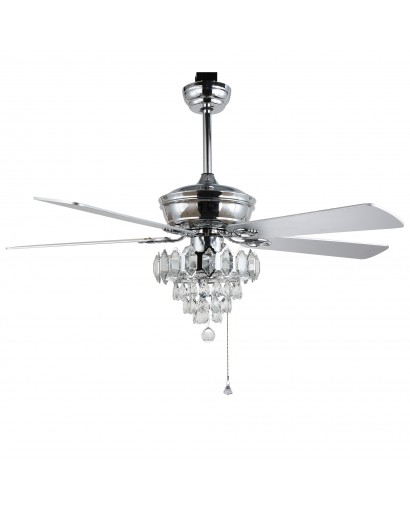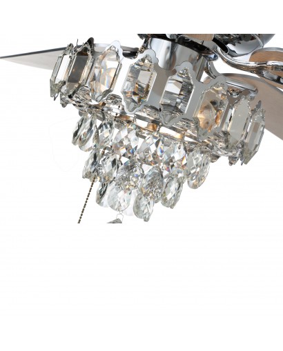 52" Reversible 5-Blade Crystal Chandelier Ceiling Fan with Remote Control, Black, Chrome