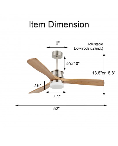 Package Includes: Ceiling Fan with Light, Remote Control, Installation Manual, 2 Downrods (L5" and L10")