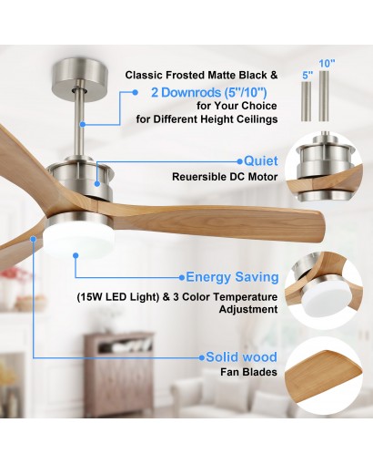Main color: Black and Nickel Finish with Brown Wooden Blades