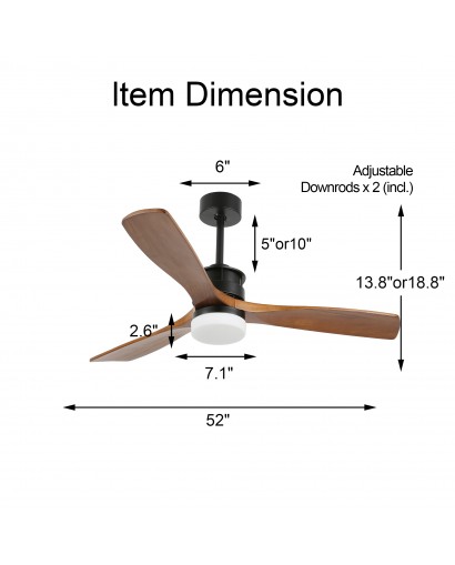 Package Includes: Ceiling Fan with Light, Remote Control, Installation Manual, 2 Downrods (L5" and L10")