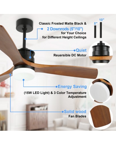 Silent Reversible Motor: The ceiling fan has a reverse airflow function. The noise of the fan is less than 30 dB.
