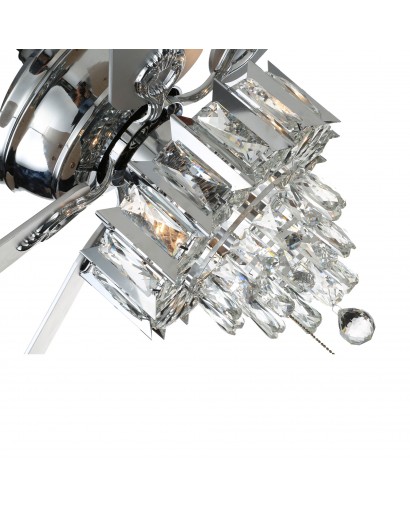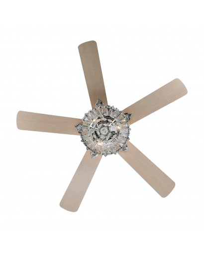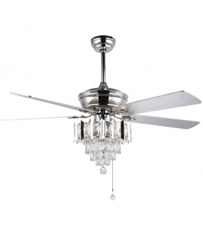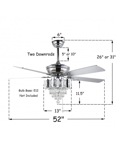 Add a captivating charm to your decor with this crystal ceiling fan. This ceiling fan light is a modern ceiling fan and crystal chandelier 2 in 1. The classic fan design completes the look with sparkling crystals and chrome matte black finish. This crystal ceiling fan is a very stylish and cost-effective option with five reversible wooden blades that lower the temperature in summer to push stale air out of the room, and push warm air down to keep the interior warm in winter. This chandelier ceiling fan light is the perfect solution for your fan and lighting needs.