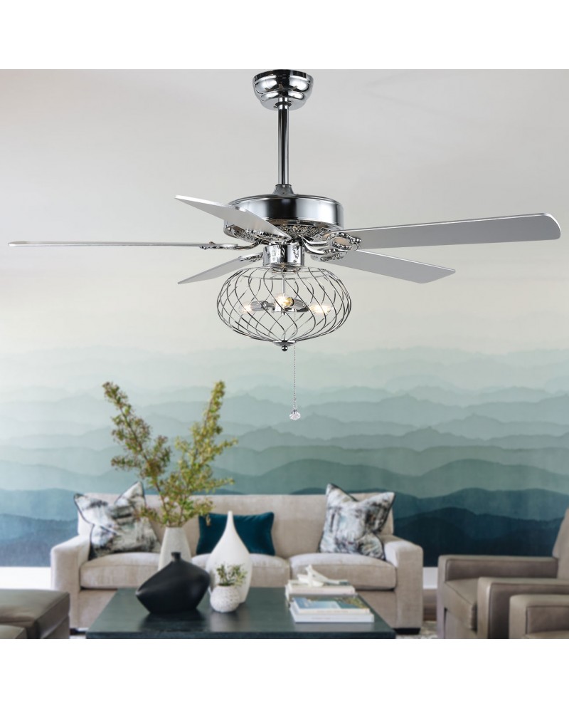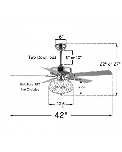 Fit perfectly into the modern interior design of your home with this modern industrial ceiling fan. Give your farmhouse a new look with this minimalist industrial ceiling fan. This ceiling fan is designed with a metal cage for a more personalized look. With reversible blades, you can enjoy recycled air all year round. Even in the cold winter, the reversing blades push the warm air downward, keeping the whole house warm and saving you energy and money. The near-silent motor is ideal for the ceiling fan light in the bedroom, providing a comfortable and quiet sleeping environment. Requires 3 E12 bulbs (not included) to light up your room. The included remote control can control all the functions of the fan and light, and it can be used with a pull chain to facilitate your life.