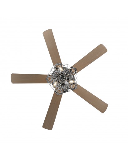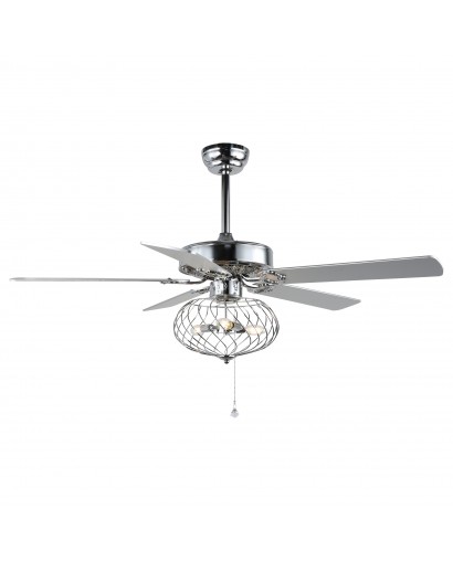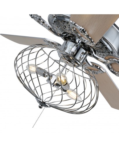 Industrial 5 Reversible Wood Blades Caged Metal Frame Ceiling Fan with Remote and Pull Chain, Black, Chrome