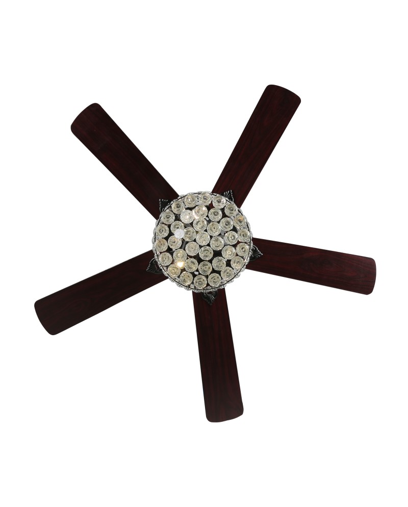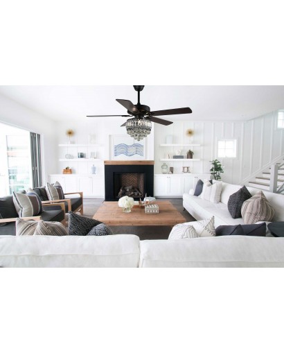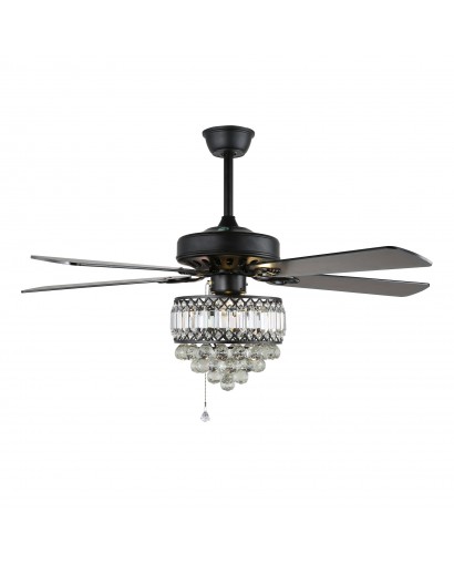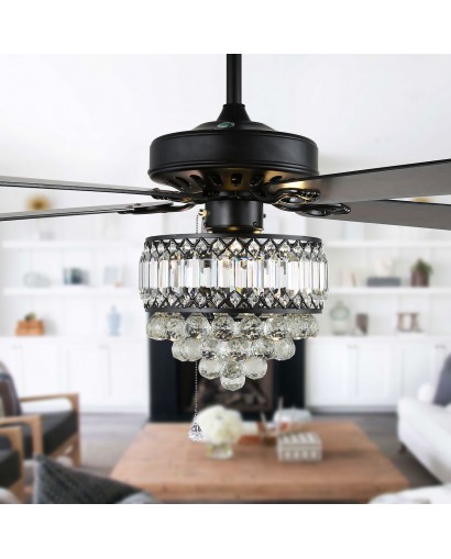 52-inch Industrial Reversible 5-blade Ceiling Fan Crystal Shade Chandelier with Remote, Black, Chrome