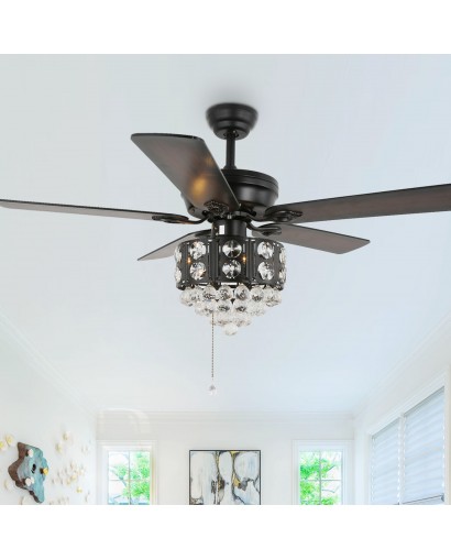 Cusp Barn 52-In Glam Drum Crystal Shade Wood 5-Blade Ceiling Fan with Reversible Blades Chandelier
