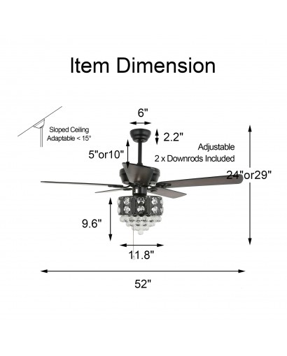 Create a stylish and sparkling room space with this crystal ceiling fan. Ceiling fans and lights can work separately or together. This ceiling fan light requires 3 E12 bulbs (not included) to light up your room and meet your lighting needs. Reversible fan blades keep the room cool in the summer and warm in the winter and enjoy the recycled air all year round. The almost silent motor runs smoothly, creating a comfortable and quiet sleeping environment. Make your space more gorgeous with this crystal ceiling fan light.