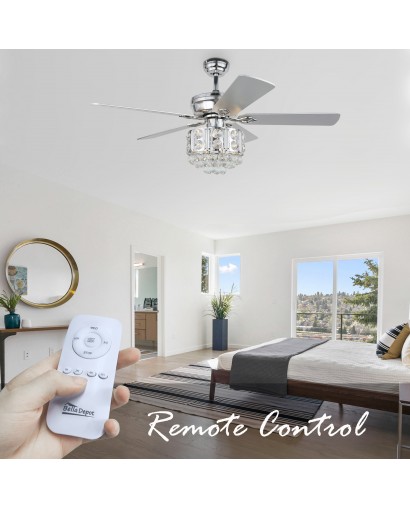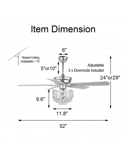 Create a stylish and sparkling room space with this crystal ceiling fan. Ceiling fans and lights can work separately or together. This ceiling fan light requires 3 E12 bulbs (not included) to light up your room and meet your lighting needs. Reversible fan blades keep the room cool in the summer and warm in the winter and enjoy the recycled air all year round. The almost silent motor runs smoothly, creating a comfortable and quiet sleeping environment. Make your space more gorgeous with this crystal ceiling fan light.