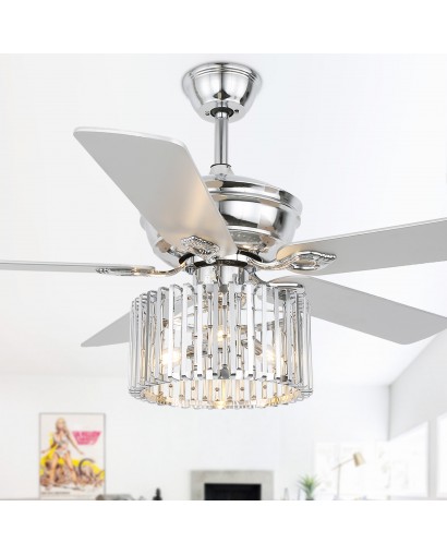 Bring charming charm to your living space with this glamorous ceiling fan. This ceiling fan light is equipped with a three-speed motor (low/medium/high) to select the appropriate fan speed to maintain the optimum temperature. The fan blades are wood with a perfect combination of chrome and metal finish on one side. At the same time, the reversible fan blade keeps the room cool in summer and keeps the room warm in winter by reversing downward to push warm air. The included zip or remote control can operate all the functions of the fan and light, making life more convenient. Requires 3 E12 bulbs (not included) to light up your room in style.