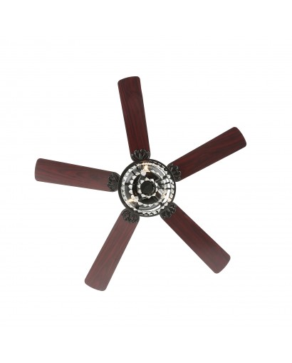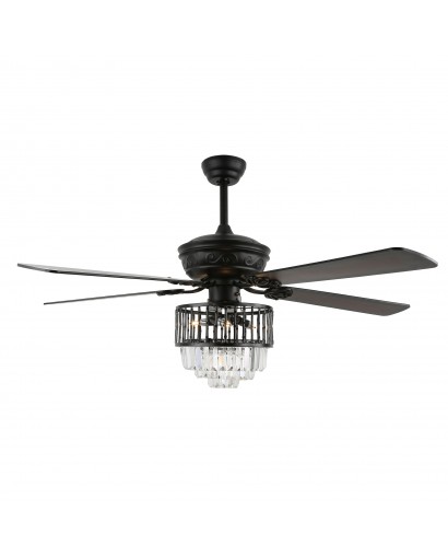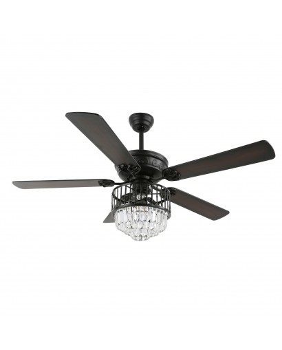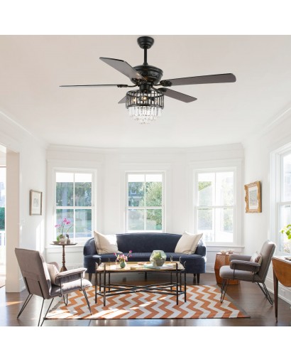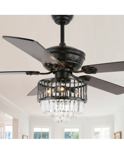 52-In Modern Industry 5-Blades Reversible Crystal Ceiling fan with Remote Control, Black, Chrome