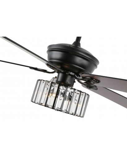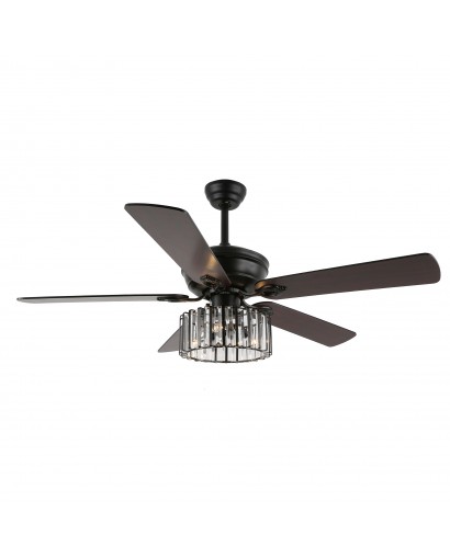 Add a flair of simplicity and elegance to a home space with this industrial-style ceiling fan light. This ceiling fan lamp has a bright chrome finish and looks great with a simple cage shade. The crystal lampshade is very beautiful under the light. Five reversible vanes allow the room to enjoy circulating air all year round. There is a 3-speed motor to select the desired fan speed. The included remote control can control the fan and light individually, and any function of the fan light makes life more convenient. Create a room with style, sparkle, and grandeur with this crystal ceiling fan.