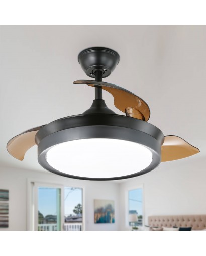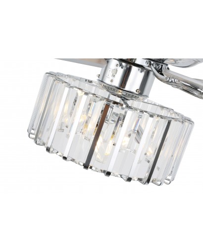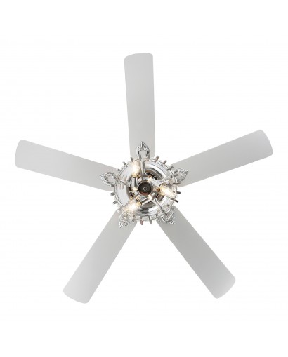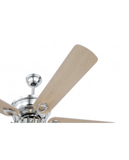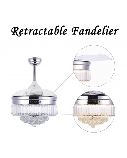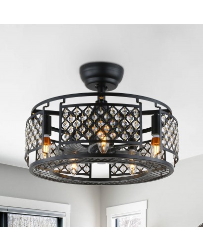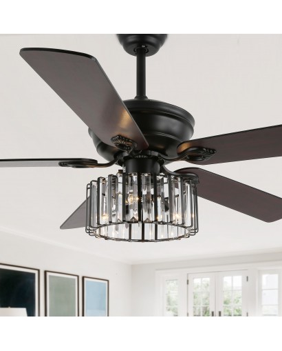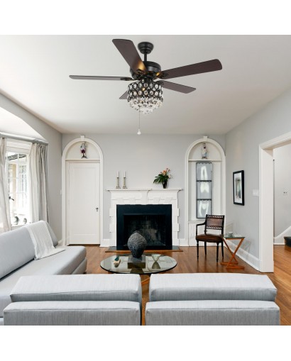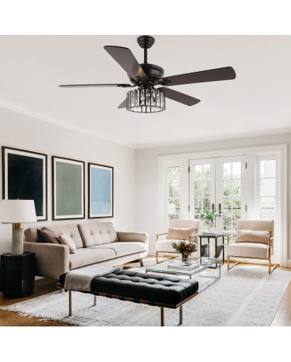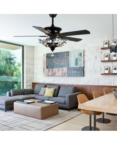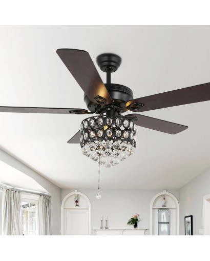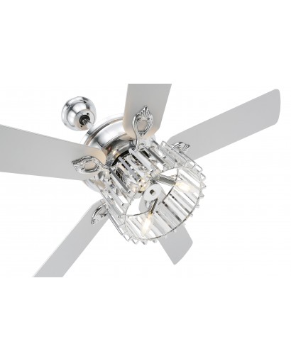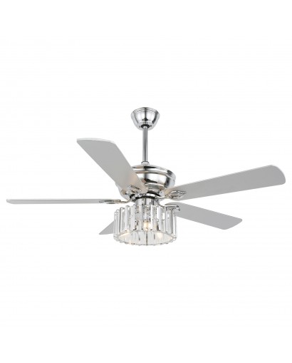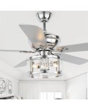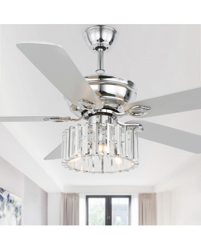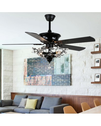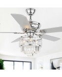 Add a flair of simplicity and elegance to a home space with this industrial-style ceiling fan light. This ceiling fan lamp has a bright chrome finish and looks great with a simple cage shade. The crystal lampshade is very beautiful under the light. Five reversible vanes allow the room to enjoy circulating air all year round. There is a 3-speed motor to select the desired fan speed. The included remote control can control the fan and light individually, and any function of the fan light makes life more convenient. Create a room with style, sparkle, and grandeur with this crystal ceiling fan.