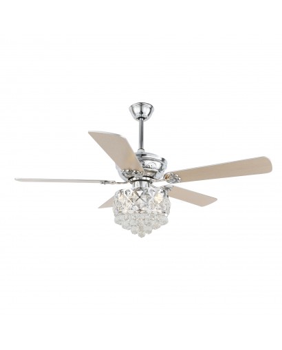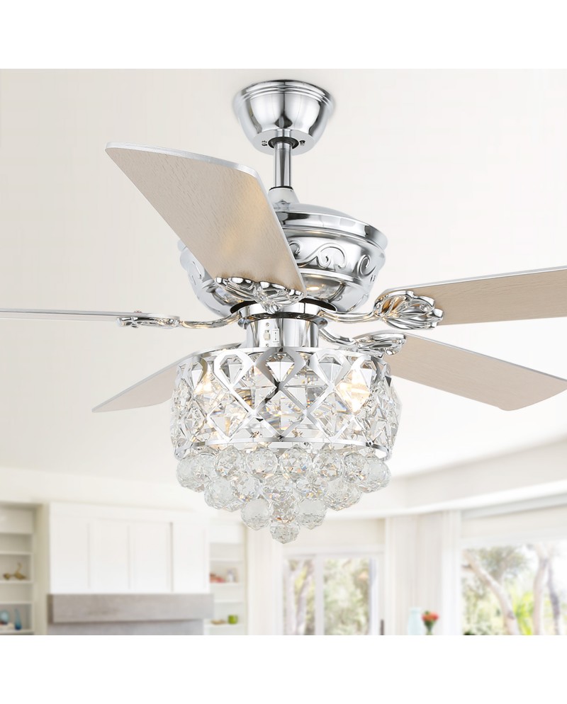 wishlist Compare Add to cart Quickview Modern 52" Reversible 5-blade Chrome Finish Crystal Ceiling Fan with Remote Control and Pull Chain $229.00
