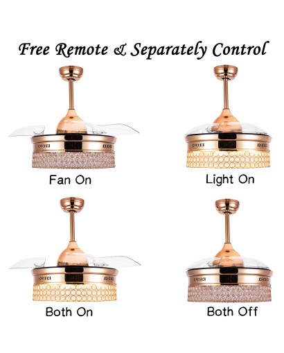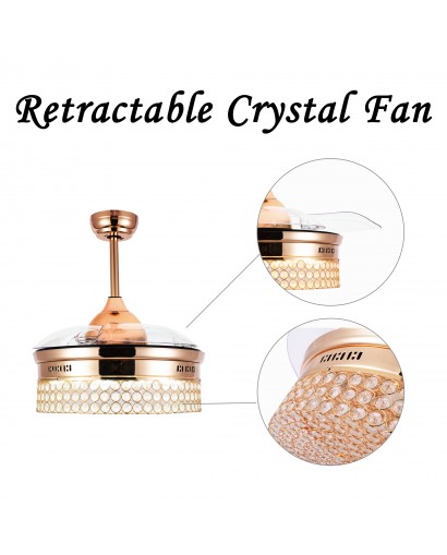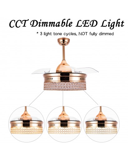Elevate the luxury and sophistication of your home interior with this modern ceiling fan. This ceiling fan features LED lights that illuminate the room 360 degrees. CCT dimmable LED light mode allows you to switch back and forth between 3 light colors, cool light, neutral light and warm light. Retractable blades are easy to clean. When the fan is turned on, the blades extend, and when the fan is turned off, the blades shrink accordingly without taking up space. The powerful motor runs smoothly and is virtually silent throughout, providing a peaceful sleeping environment.