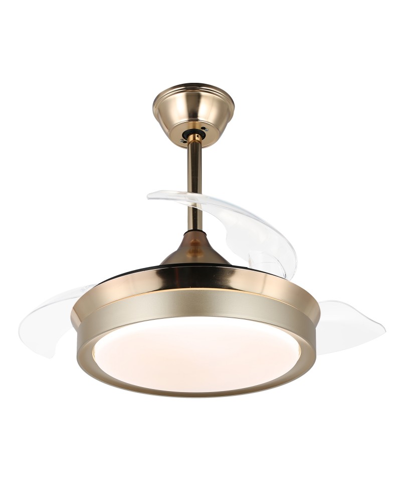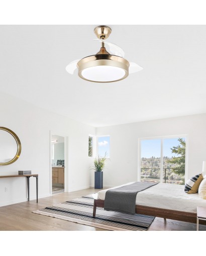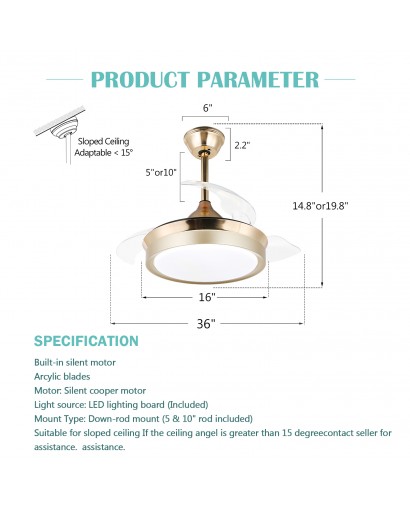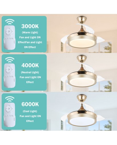 Enjoy a fresh breeze with this contemporary ceiling fan. This modern ceiling fan features retractable blades that save space and don't trap dust for easy cleaning. The blades automatically extend when you turn on the fan, and retract when the fan is turned off. Includes integrated LED lights to help provide ambient lighting and save on electricity bills. 3-speed motor and CCT dimming, giving you a quiet and comfortable living environment. This ceiling fan is perfect for living room, bedroom, kitchen, dining room, and more.