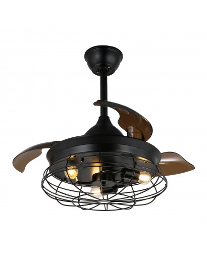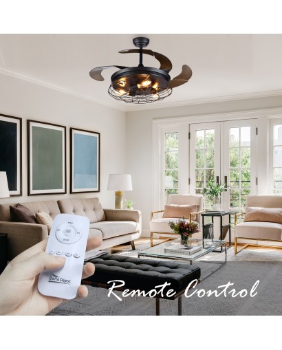 Give this ceiling fan a striking industrial look with the cage design. This ceiling fan features 3 retractable blades, the transparent ABS blades automatically hide when you turn off the fan and automatically expand when you turn the fan on. This ceiling fan includes 2 down rods (5" and 10"), you can choose the length you want. 3-speed and complete remote control functions fans and lights can be controlled separately. Requires 3 E26 Basic Bulbs, Edison Bulbs / LED / CFL / Incandescent (bulb not included) to light up your room. 3-speed and almost silent motor gives you a comfortable living environment.