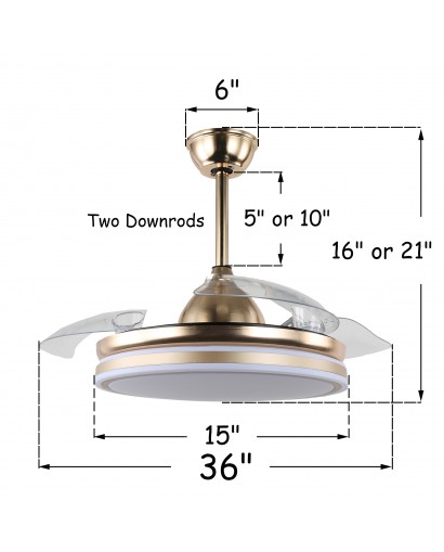 Create a beautiful indoor atmosphere with 3 retractable blades ceiling fans. This ceiling fan light is made of a metal frame and acrylic fan blades, which perfectly integrates the modern decoration style. Equipped with a new CCT Dimmable LED light source, allowing you to switch back and forth between 3 colors of light, cool light, neutral light, and warm light. The blades are retractable and extend as the fan is turned on. When the fan is closed, the fan blades will shrink, which is not easy to accumulate dust and saves space. The included remote control controls all the fan and light functions, and you can operate the fan and light from anywhere in the room with a hand-held remote control to make your work more convenient.