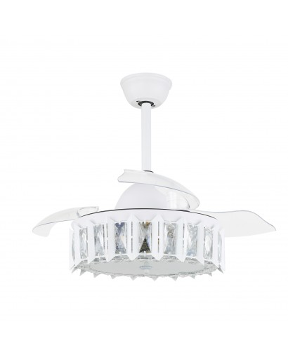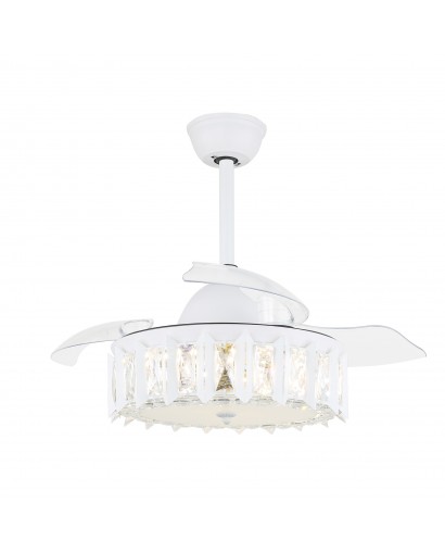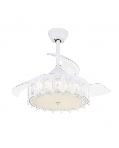 36-Inch Crystal Retractable Ceiling Fan with CCT Dimmable LED Light and Remote Control for Living room, Black, Chrome, Gold, White