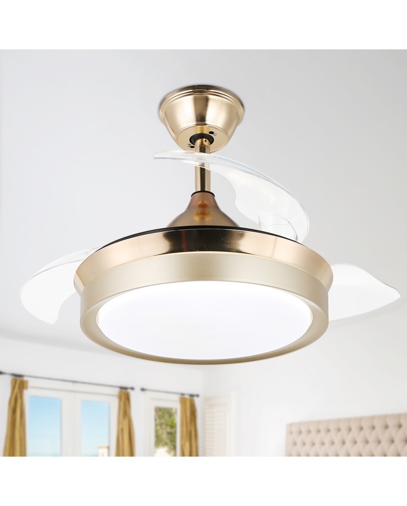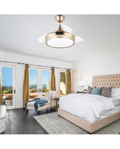Get stunning style with this 42'' Retractable 3-Blade contemporary ceiling fan. This modern ceiling fan features retractable blades that save space and don't trap dust for easy cleaning. The blades automatically extend when you turn on the fan, and retract when the fan is turned off. Includes integrated LED lights to help provide ambient lighting and save on electricity bills. 3-speed motor and CCT dimming, giving you a quiet and comfortable living environment. This ceiling fan is perfect for living room, bedroom, kitchen, dining room, and more.