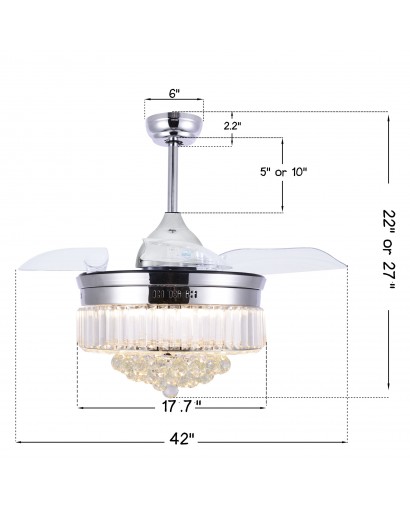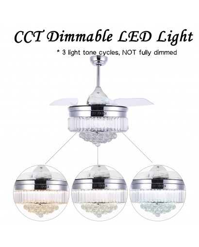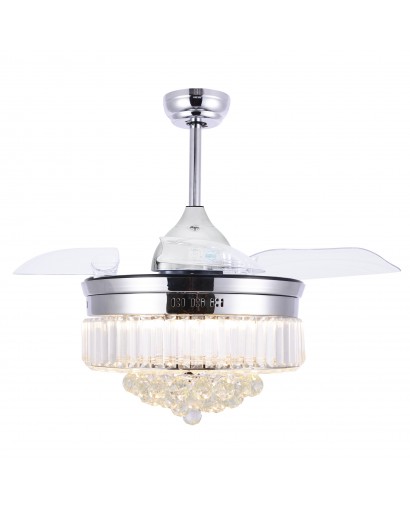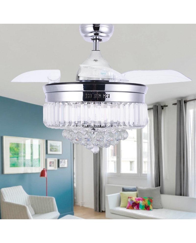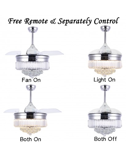 Give a luxurious and stunning ambiance to your room space with this modern and unique crystal-decorated ceiling fan light. This uniquely styled fan features a metal finish with acrylic blades and crystal shades to fill your room with elegance and charm. Retractable blades are used to automatically extend when the fan is turned on, and automatically retract and hide when the fan is turned off, saving space. This modern ceiling fan lamp has soft and natural light to protect your eyes and satisfy your lighting life.