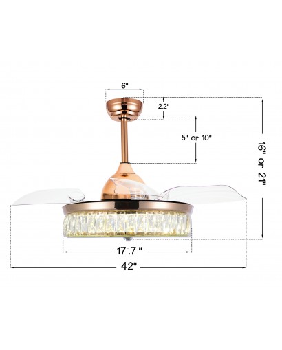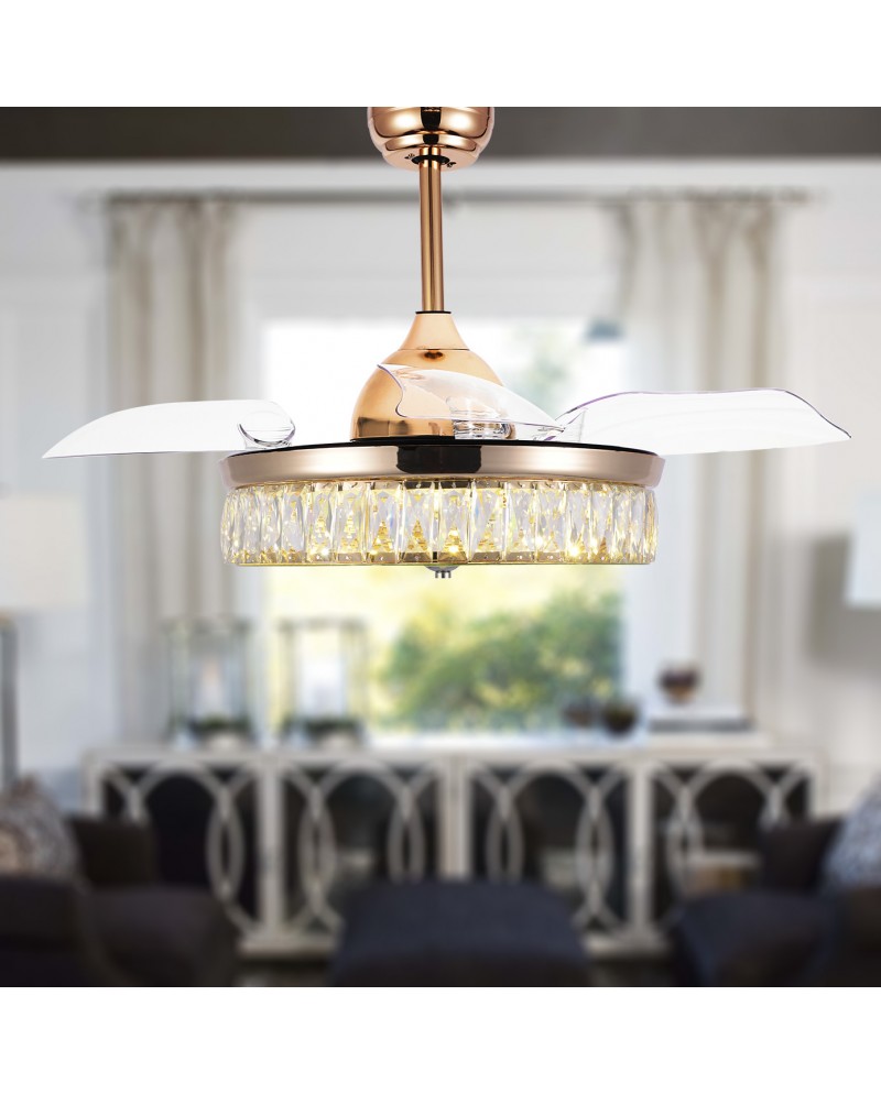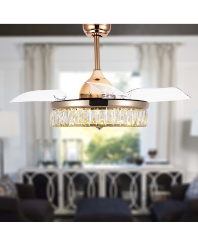 Lighten up your home space with a luxurious modern-style crystal ceiling fan. This ceiling fan is CCT dimmable light, it has 3 light tones, please turn off the light and then turn it on again, and the light tone will change. After busy work, please enjoy a comfortable living environment with soft lighting. The retractable fan blades are made of high-quality acrylic, which is stretched out when the fan starts to operate and retracted when the fan is closed, which is not easy to accumulate dust. Provide endless convenience to life with this ceiling fan with remote control.